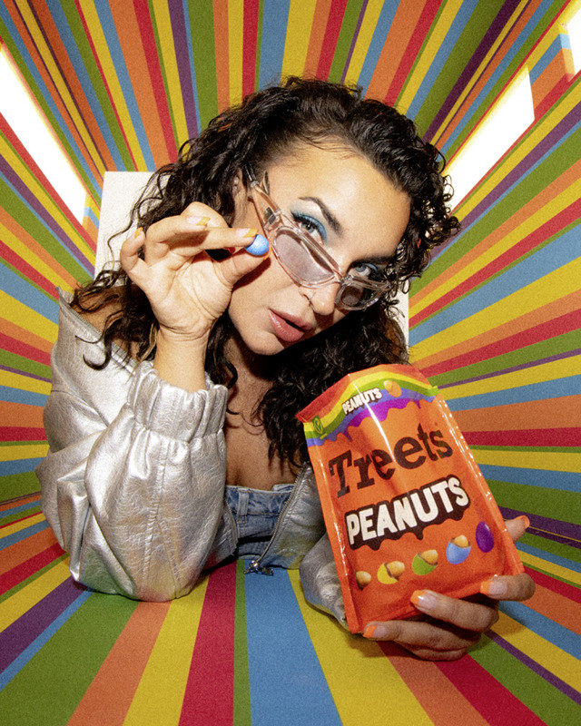 Die in Berlin lebende Künstlerin gilt als eine der vielversprechendsten Newcomerinnen Deutschlands und verkörpert den Treets-Spirit wie keine Zweite: laut, bunt und ziemlich slay. Lyrics wie „Spreade good vibes, bunte Farben überall. Ja das muss sein, Million Dollar Candy Smile!“ machen klar: Treets legt seinen Fokus auf das Thema Farben. Die Dragees werden ausschließlich mit veganen Farben hergestellt, also ohne tierische Farbstoffe wie z. B. Karmin/E120. Treets werden mit veganen Alternativen, u. a. dem pflanzlichen Betenrot, gefärbt.