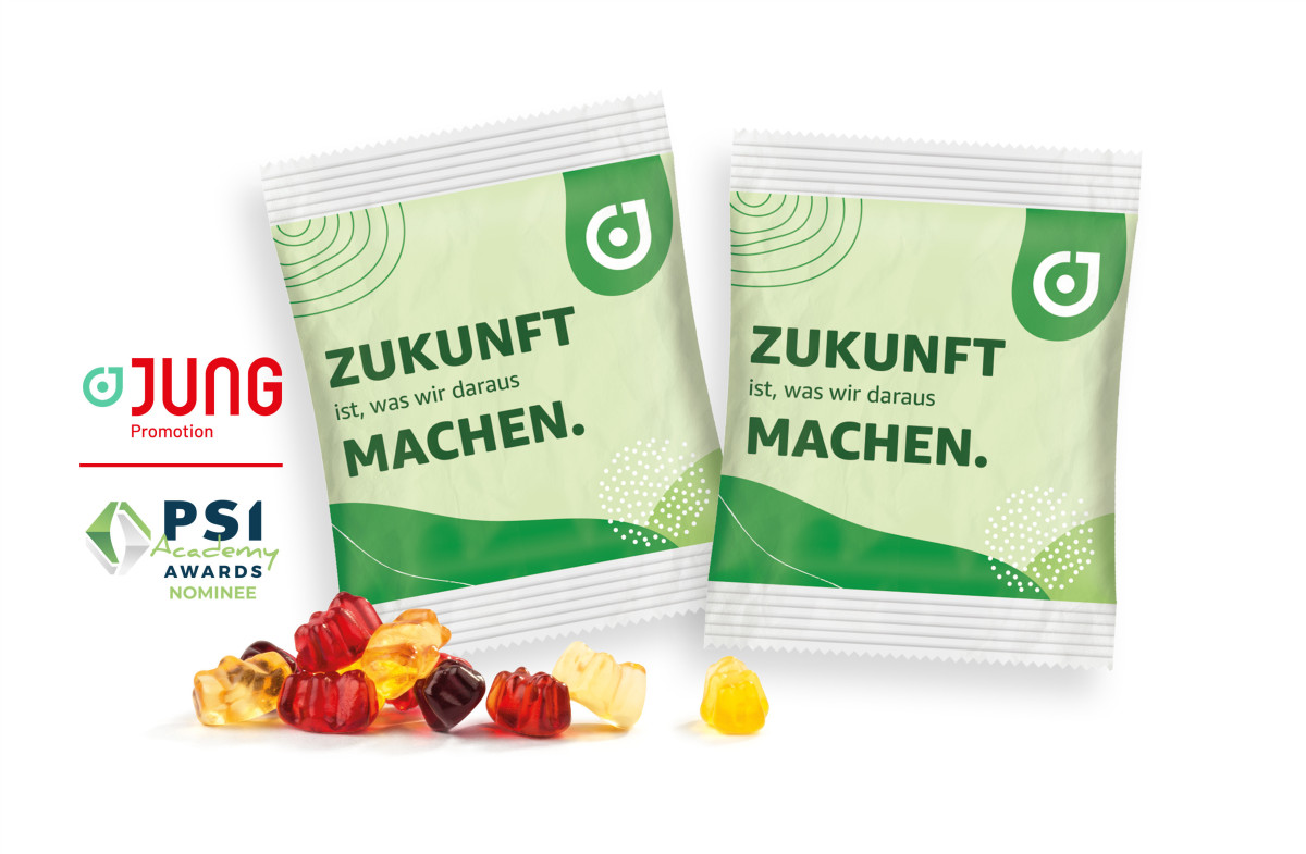 Jung Promotion, eine Marke der Jung since 1828 GmbH & Co. KG, ist einer der Nominierten für die PSI Academy Awards. „Die „Papier-Werbetüte Fruchtgummi ist ein gutes Beispiel für die positive Energie, mit der unsere Finalisten an der nachhaltigen Transformation unserer Branche beitragen“ betont Petra Lassahn, Direktorin PSI.