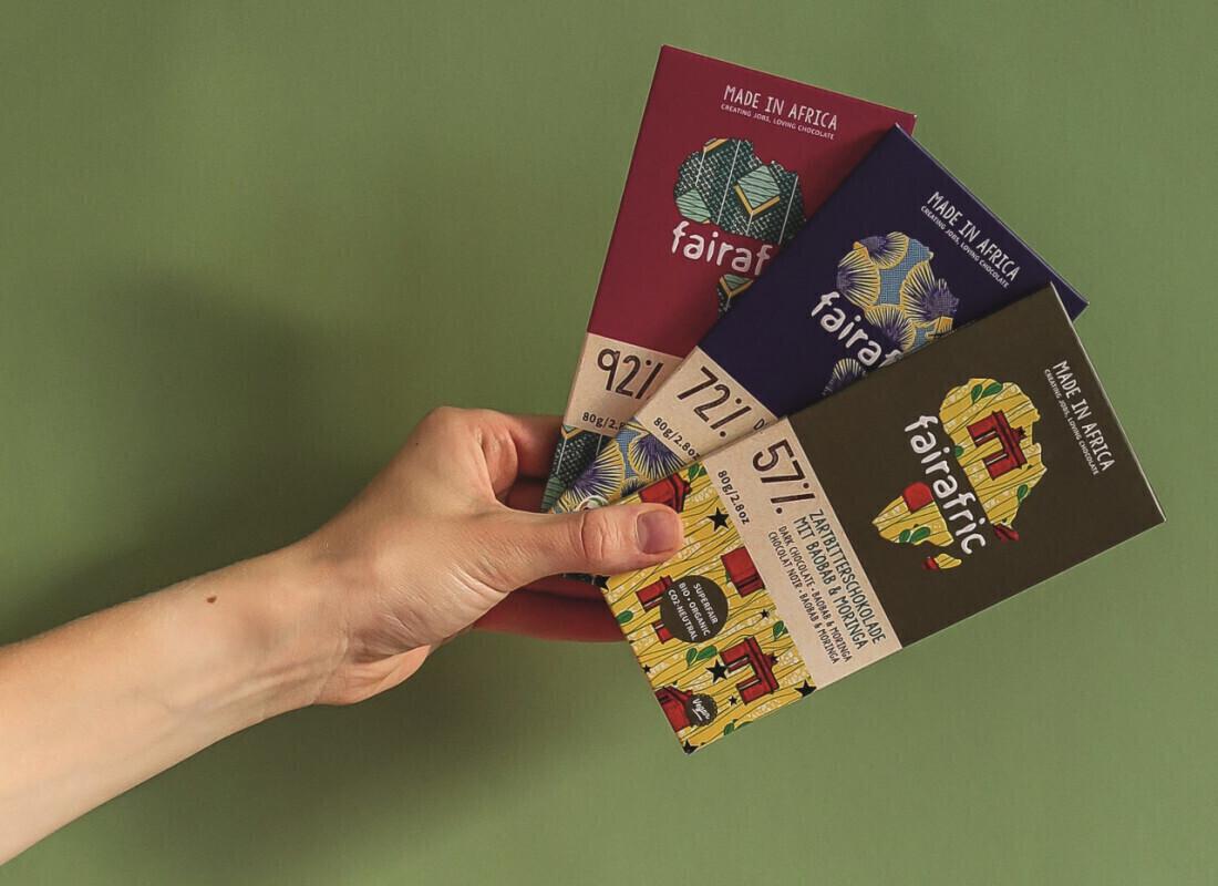 Die ghanaisch-deutsche Social Impact Firma fairafric erweitert ihre Produktpalette an Bio-Schokoladentafeln um die Sorten 57% Baobab Moringa, 72% Dark Milk und 92% Dark. Die exklusive Mischung Baobab Moringa mit lokalen ...