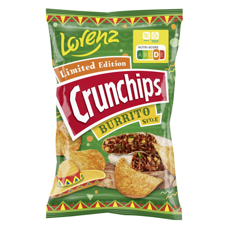 Crunchips Burrito Style ist inzwischen die 27. Limited Edition der Kartoffelchips-Marke. Sie lädt Chips-Fans zu einer Fiesta für die Geschmacksknospen ein. Crunchips Burrito Style sind glutenfrei und kommen ohne zugesetzte ...