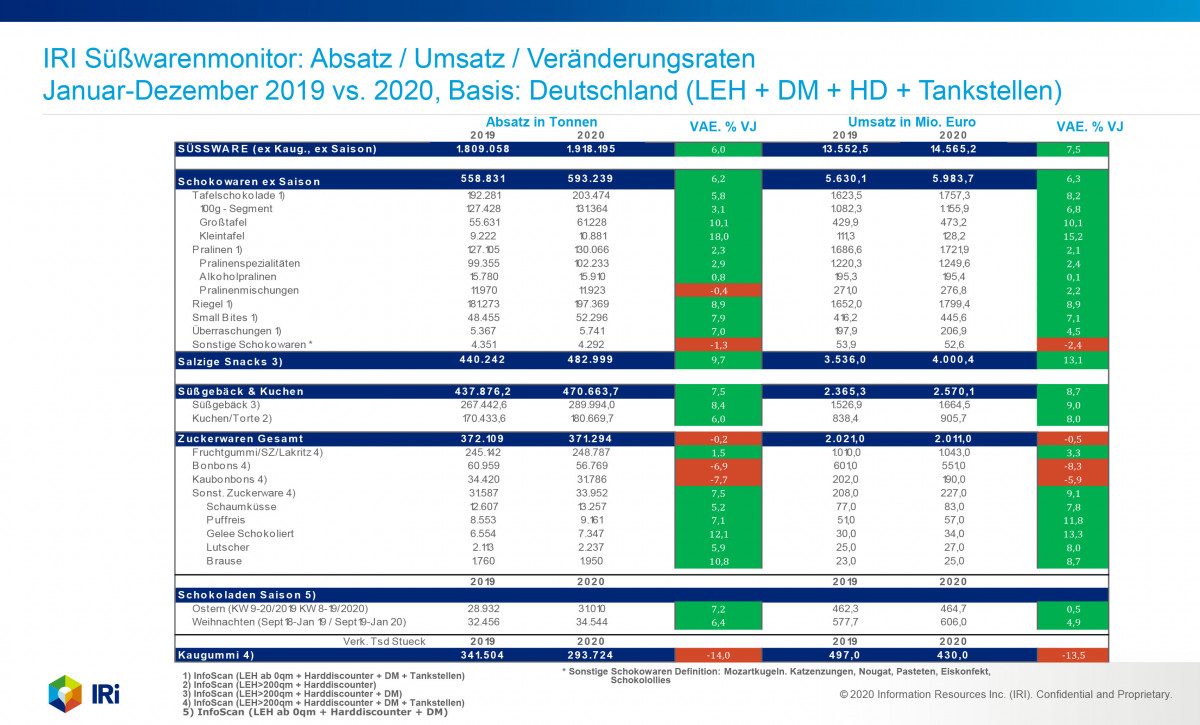 IRI confectionery monitor: strong growth in the crisis year 2020