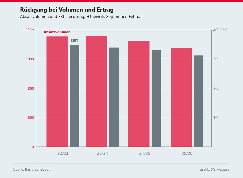New CEO Hein Schumacher announced the „Focus for Growth" programme, the details of which will be presented in June 2026. For the full year, Barry Callebaut now expects a volume decline of only 1 to 3 percent – with a return to growth anticipated in the second half.