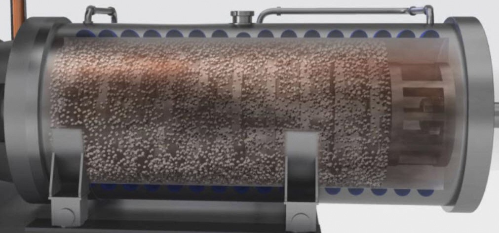 Fine products require low throughput, which means that there is a high concentration of balls in the bottom part of the grinding vessel. And this creates high wear, as the balls grind themselves. The result is a high iron content in the product of up to several hundred mg/kg. In contradiction to this situation: the homogeneous distribution of balls in horizontal ball mills.